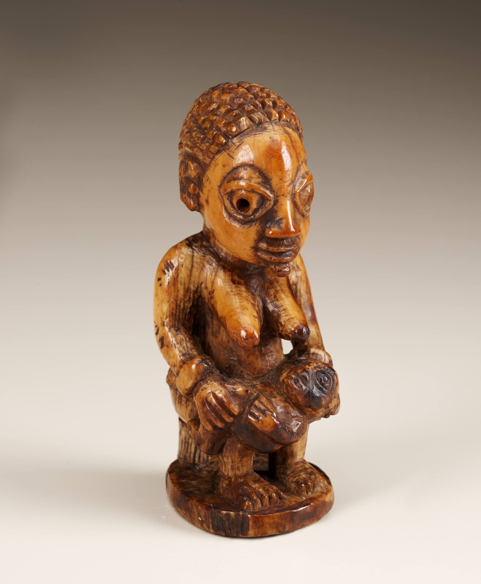 Not on viewWhen a barren Yoruba woman was directed by a diviner (babalawo) to petition an ancestor for the blessing of fertility, she placed a statue of a woman and child on an altar in a shrine.Provenance