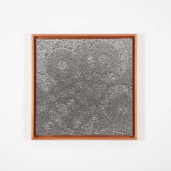 Medium4,670 convex blown-glass fragments and 2,878 concave blown-glass fragments and aluminum mounted on museum board and red cedar wood