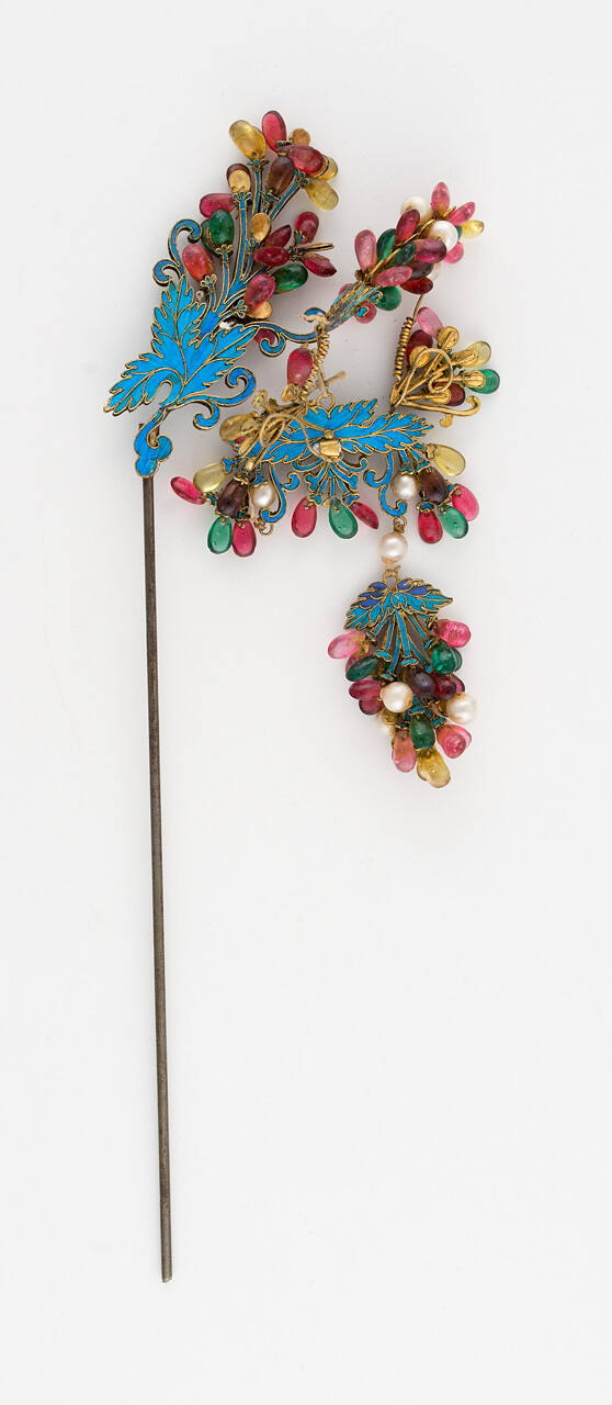 DescriptionBlue enamel and gilt leaves and stems. Grapes of various stones.Exhibition HistoryPortland Art Museum (OR), November-December 1952.