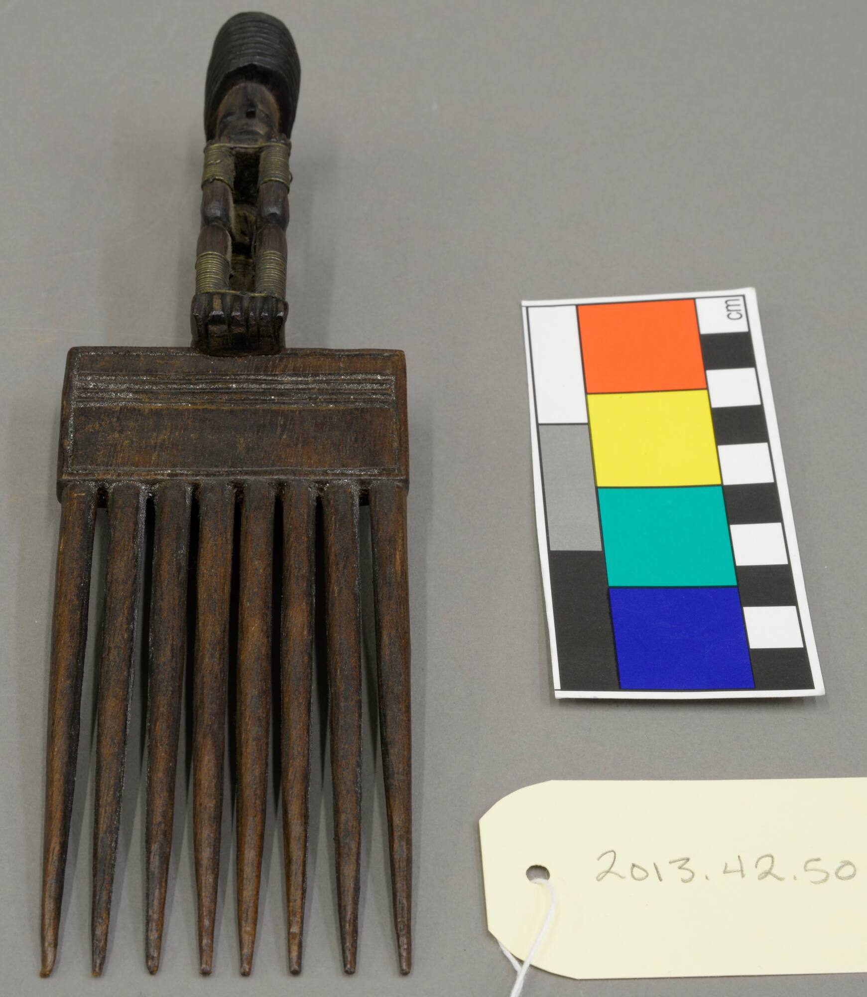 DescriptionDetails carved on top of a comb include a seated female figure with arms on knees, detailed coiffure.ProvenanceMonteiro collection, Portugal [1];