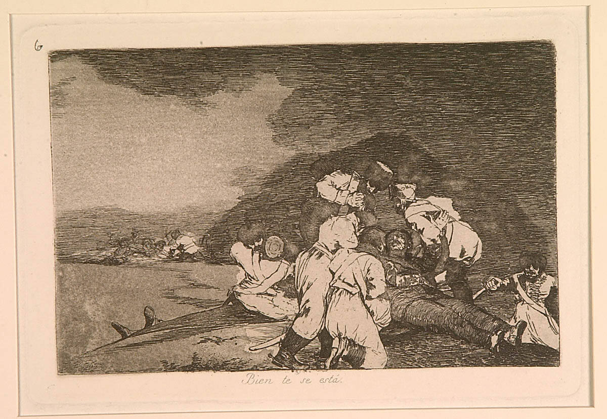 Tomás Harris, Goya Engravings and Lithographs (Oxford: Bruno Cassirer, 1964), 1: no. 126, p. 32, (repro.), as Bien te se está. (It serves you right.); 2: no. 126, p. 185, (repro.), as Bien te se está. (It serves you right.).