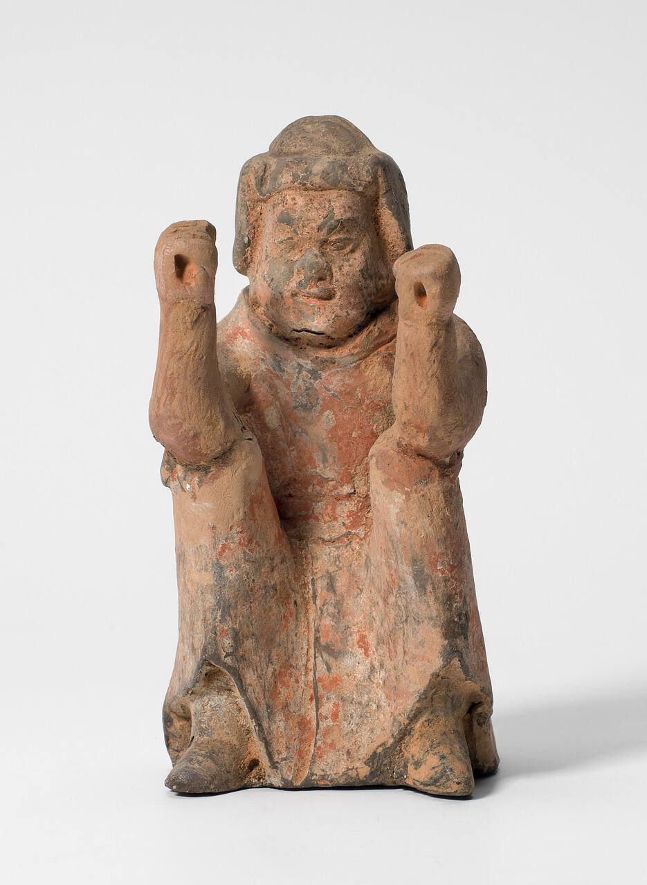 DescriptionFigure of a seated man with elbows on knees. Traces of pigment remain.
