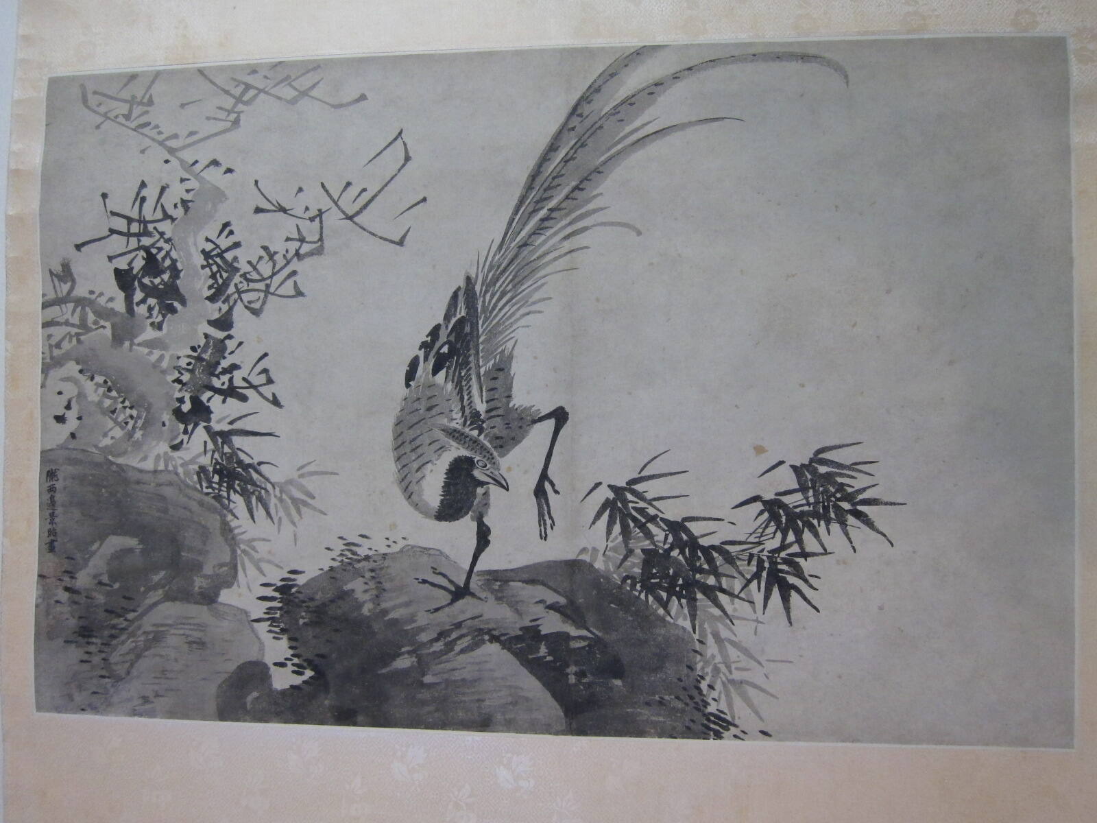 DescriptionPheasant standing on one leg in a rocky landscape. Black monochrome.ProvenanceWith Yueh Ku Chai, Liulichang, Peiping (modern-day Beijing), China, by March 23, 1934 [1];