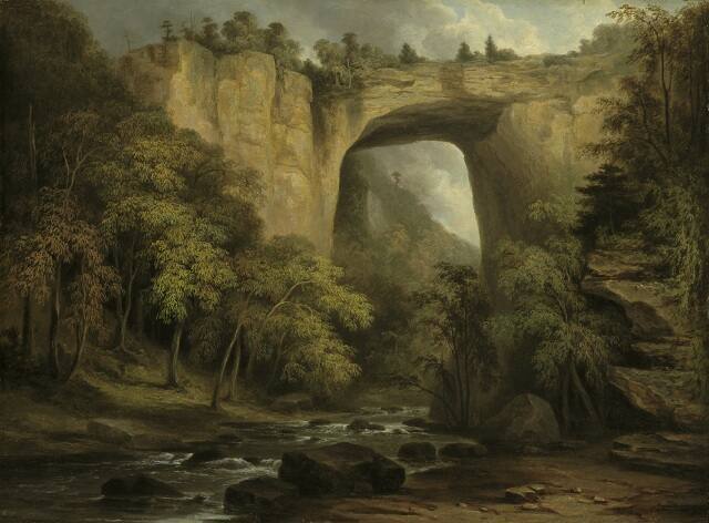 During the early 19th century, many artists rendered the Natural Bridge because the site ranked with Niagara Falls as one of the new nation's most inspiring landmarks and tourist attractions. Such natural monuments were thought to distinguish America from Europe. Ward was one of America's first landscape painters and among the first contributors to exhibitions at the National Academy of Design in New York.
