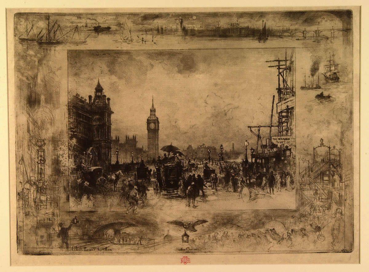 Gustave Bourcard and James Goodfriend, Félix Buhot, catalogue descriptif de son oeuvre gravé (New York: M. Gordon, 1979), no. 156 VI/VIII, pp. 97-98, as Westminster Bridge ou: Westminster Clock Tower.