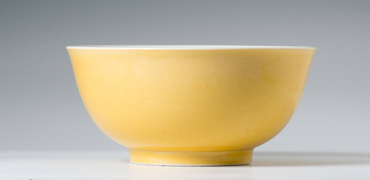DescriptionOne of a pair of bowls glazed on the exterior with Imperial yellow and white on the interior.