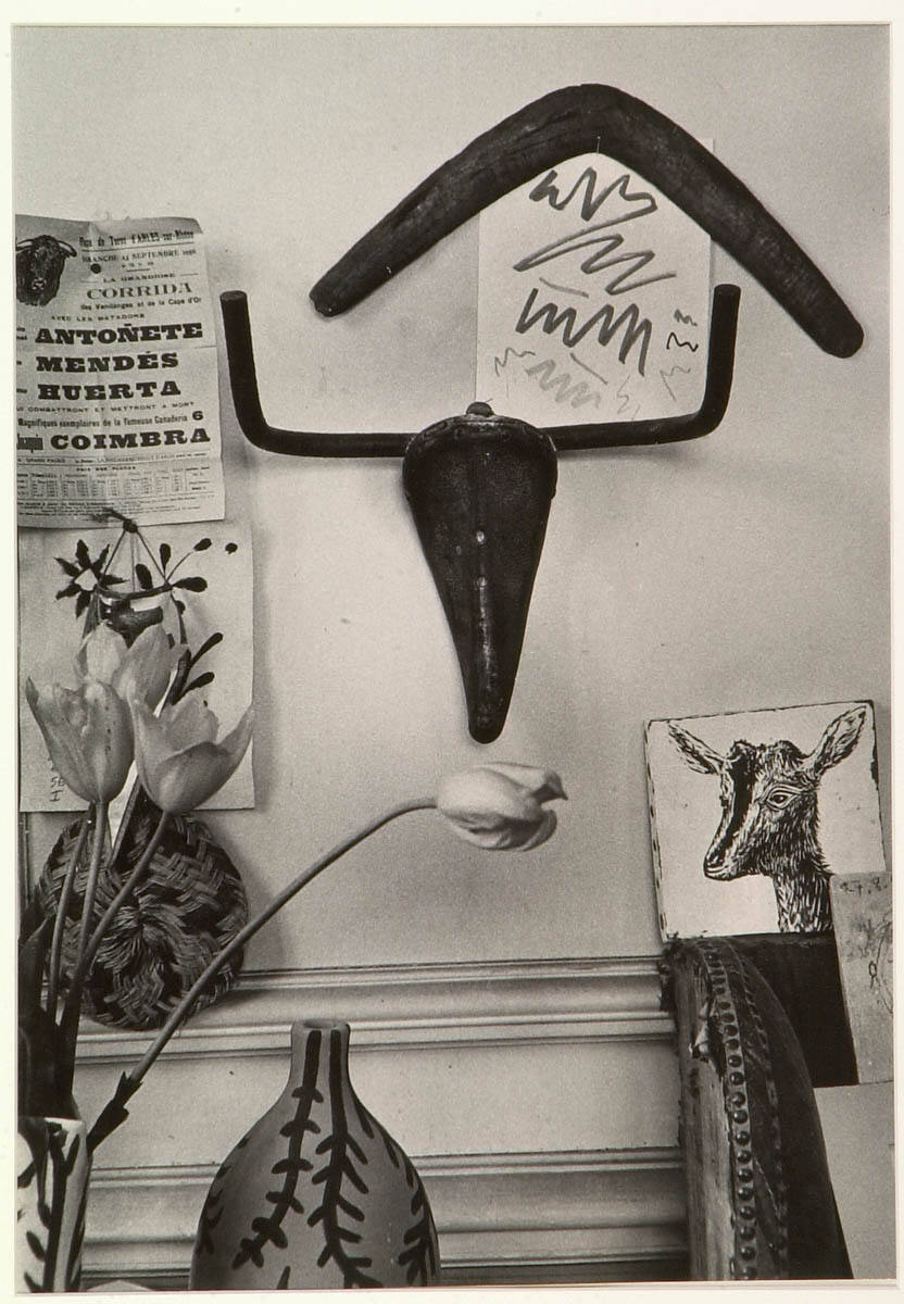 Still Life in Dining Room with 'Head of a Bull', Bronze, 1943, Formed of Bicycle Saddle and Handle Bars