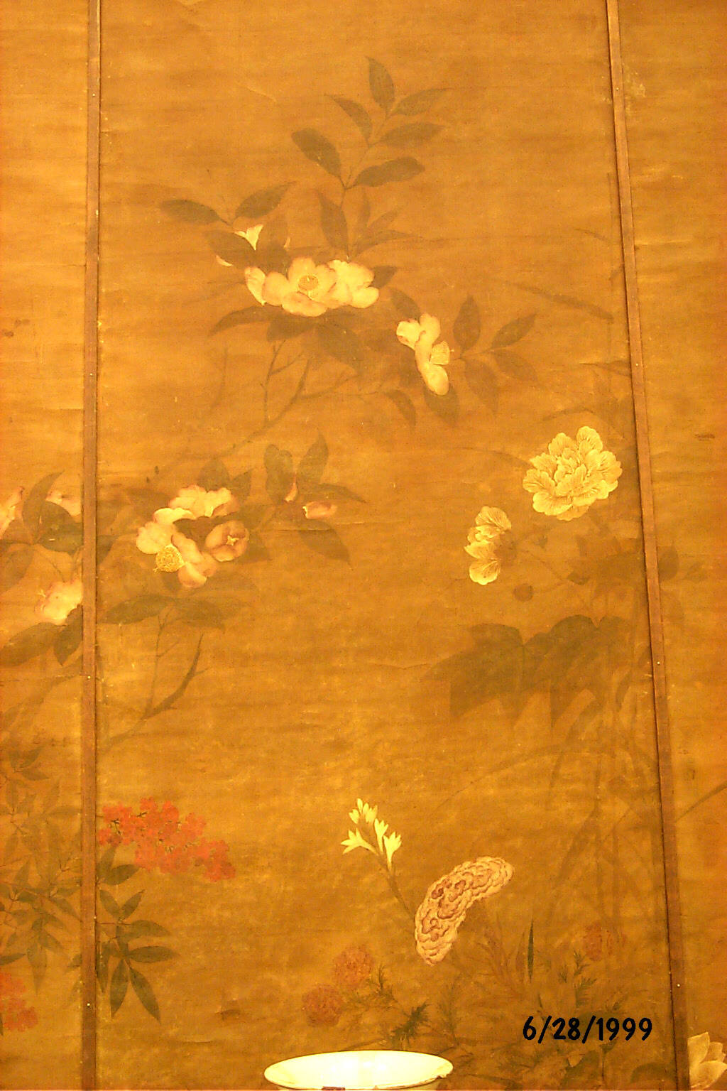 DescriptionLavender cockscomb, tuberoses, and mallow flower. One of a set of twelve hanging scrolls representing flowers of all seasons.
