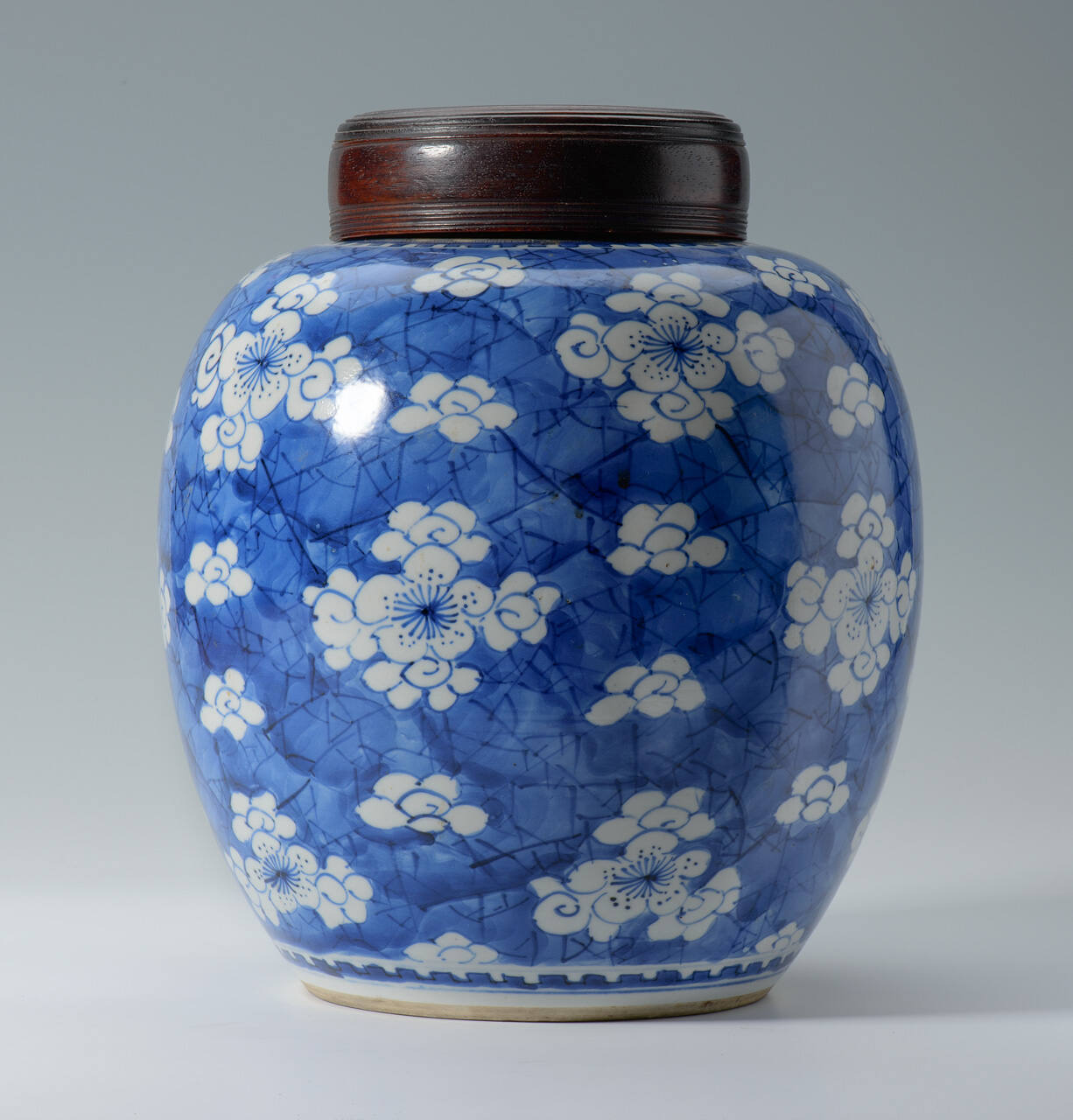 DescriptionGinger jar with white hawthorn pattern on blue background.ProvenancePurchased on the Chinese art market, through Laurence Sickman, by The Nelson-Atkins Museum of Art, Kansas City, MO, 1934 [1].