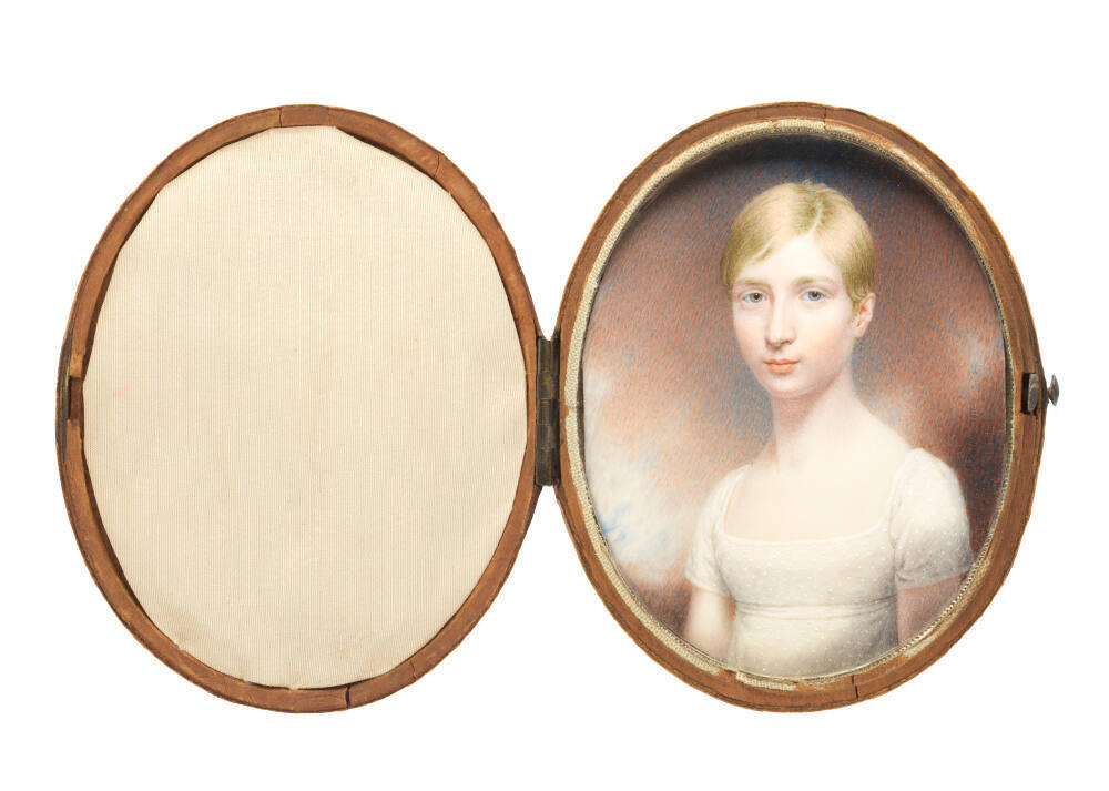 Purchased from his sale, Fine Portrait Miniatures, Sotheby and Co., London, May 2, 1955, lot 51, as A Miniature of a Young Girl, by Leggatt Brothers, London, probably on behalf of Mr. John W. (1905–2000) and Mrs. Martha Jane (1906–2011) Starr, Kansas City, MO, 1955–1958 [2];