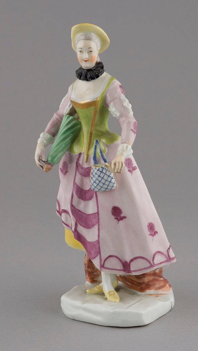 Sold at her estate sale, La Collection Rosenfeld-Goldschmidt. Tapisseries françaises et flamandes, bronzes des XVe-XVIIIe siècles…lustres, etc. 9-12 mai 1916. Frederick Muller & Cie., Amsterdam, lot 960 as Dame debout, avec parasol; [2.]