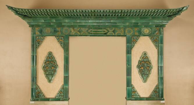 DescriptionGateway of green and yellow tiles with two flower medallions in panelsProvenanceTomb of Prince Ding, named Yonghuang; Beijing, China;