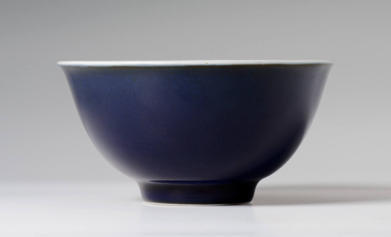 DescriptionSmall bowl glazed with a dark blue exterior, white interior.