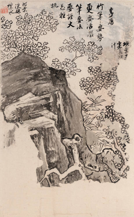 Gallery LabelGu Jianlong, who served as court painter in the Qing dynasty, learned the landscape styles from the old masters, as had his contemporaries. Some sketches recorded the method, brushwork idioms and rock formations of early masters. Gu was also skillful in portrait and figure painting, which can be seen in his studies of various postures of figures. Painters' sketches such as these were passed down only from individual to individual, making the printed painting manuals a welcome source of instruction for those without access to a tutor or paintings by the old master.