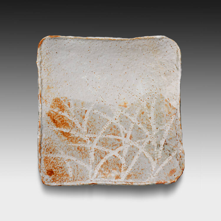 DescriptionA square cake plate with rounded corners and irregular proportions of pink Shino ware, heavily potted slab body decorated with a field of grasses in white against an ochre and rust ground covered with a feldspathic Shino glaze.Gallery LabelThese ceramics were donated by Mrs. George H. Bunting (born Karen Dean Bitler, 1912–1981), an avid art collector and supporter of the Nelson-Atkins. She was a good friend of Laurence Sickman (1907–1988), the first curator of the museum’s Asian art collection from 1935 to 1953 and director from 1953 to 1977. Her collection included Japanese calligraphy and a wide range of ceramics.