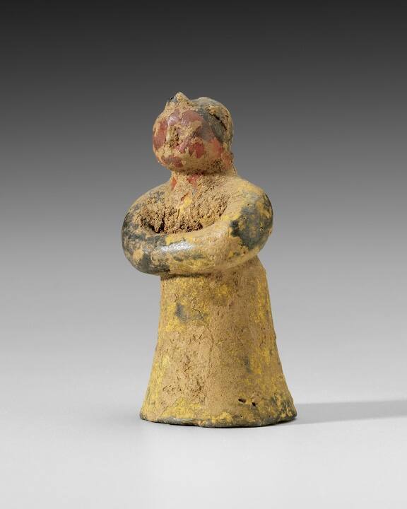 DescriptionFigure of a lady with arms folded in front and a bun on the left side of her head. Dark gray clay with traces of red pigment. One of a set of five.Exhibition HistoryWashington, DC, Freer Gallery of Art, March - June 1953.